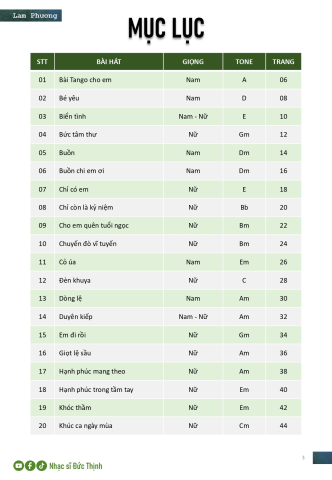 - Nhạc buồn ly hương: "Em đi rồi," "Bài tango cho em," và "Một mình."